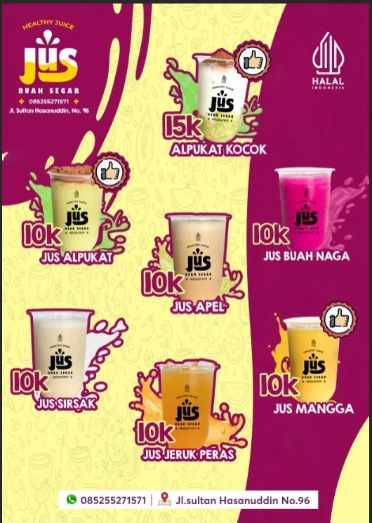 Kini Anda tidak perlu repot keluar rumah untuk menikmati segelas jus segar. Cukup duduk manis, pilih jus favorit Anda, dan hubungi kami lewat WhatsApp: 0852-8405-0566.